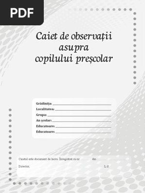 vizitati articolul complet aici : http://anyflip.com/cewyj/xcxm/basic Cerere concediu partial platit pentru ingrijirea copilului pina la virsta de 3 ani. Caiet de observatii asupra copilului prescolar. Caiet de observaţii asupra copiilor grupa mare edituradiamant ro.