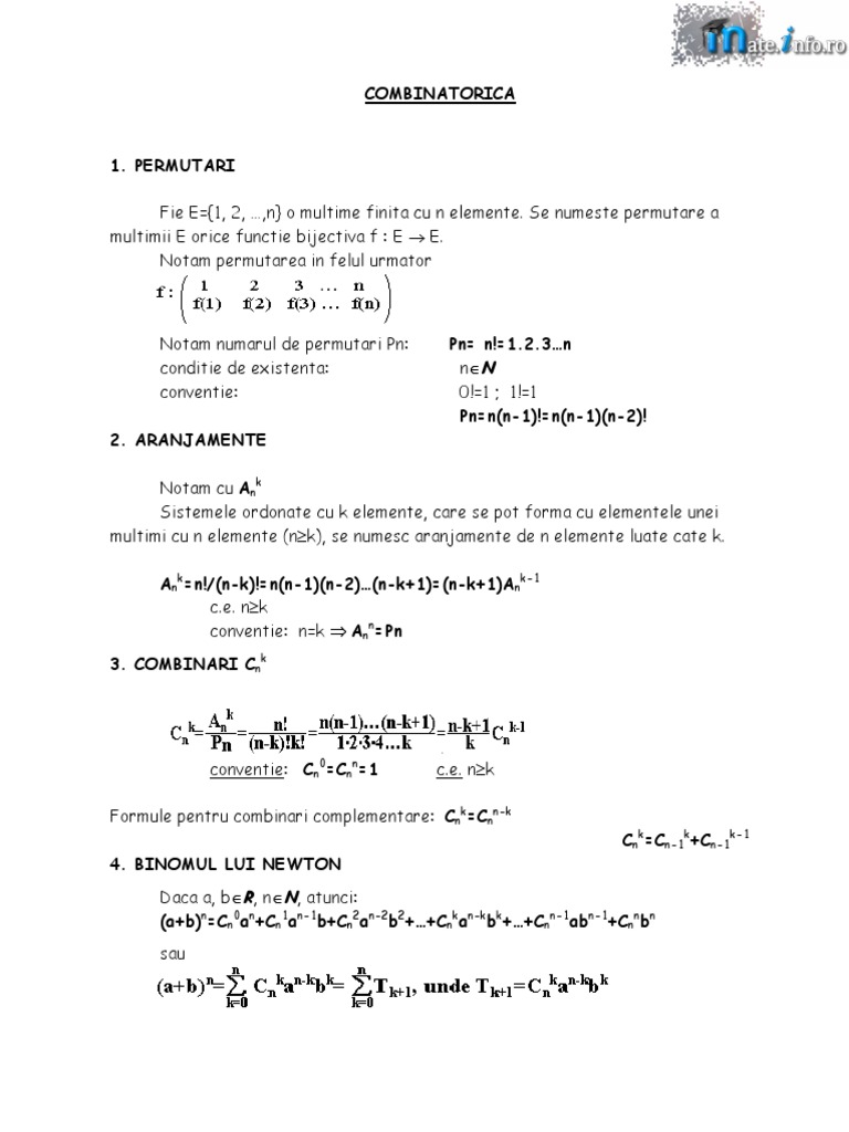 Dacă continui să folosești acest sit web, ești de acord cu utilizarea lor. Suma mea este din , k luand valori de la 0 la n. Formula combinarilor complementare = raspuns.