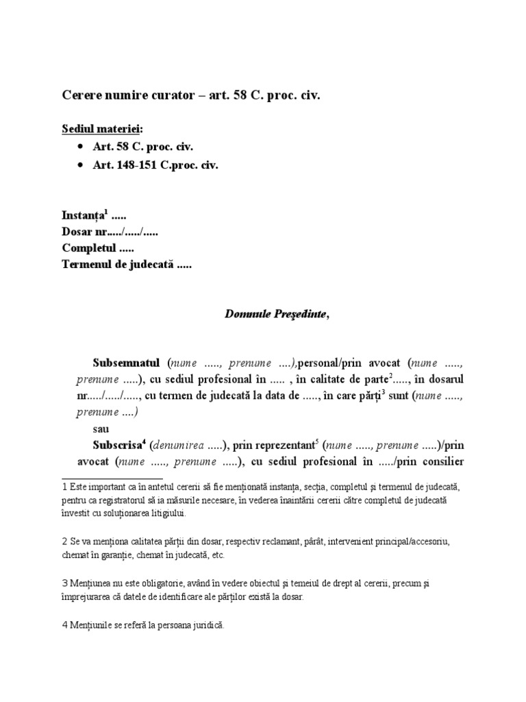 Model cerere numire curator special noul cod civil. Maybe you would like to learn more about one of these? Check spelling or type a new query.