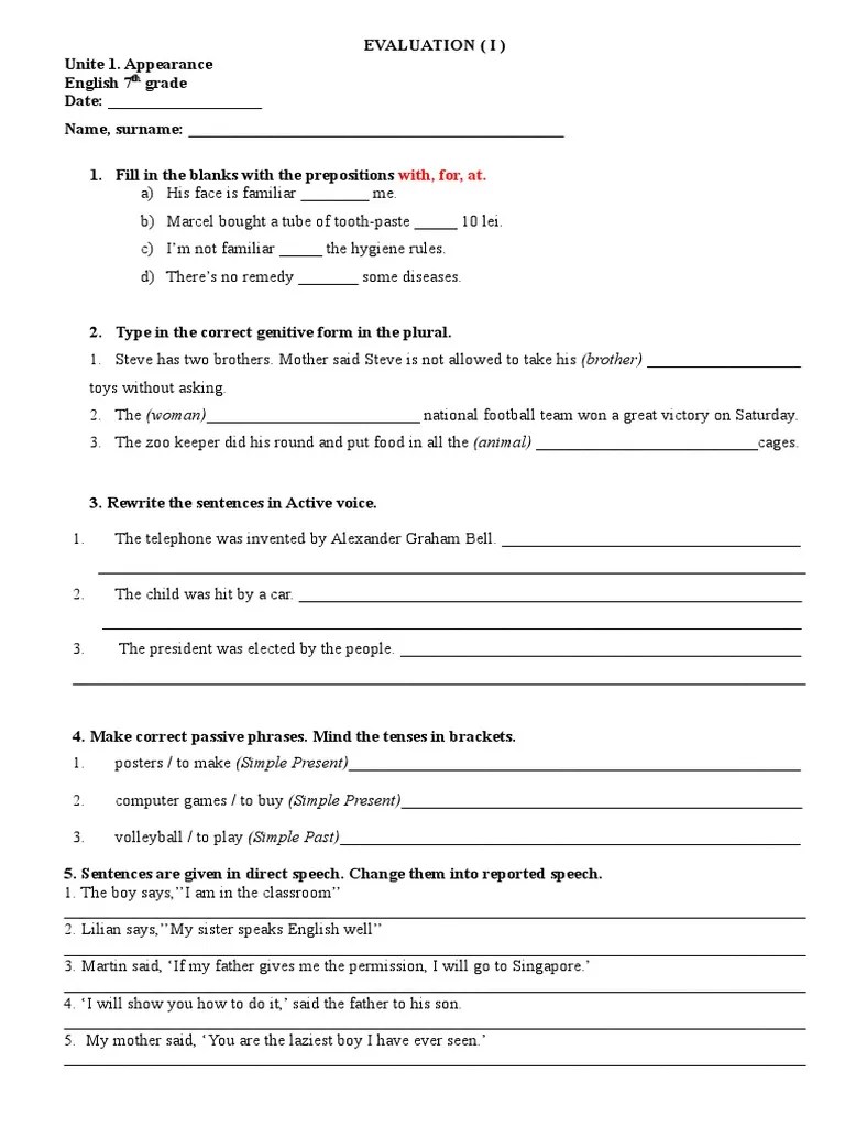 Test De Evaluare Sumativa - Evaluare Sumativa Exercise